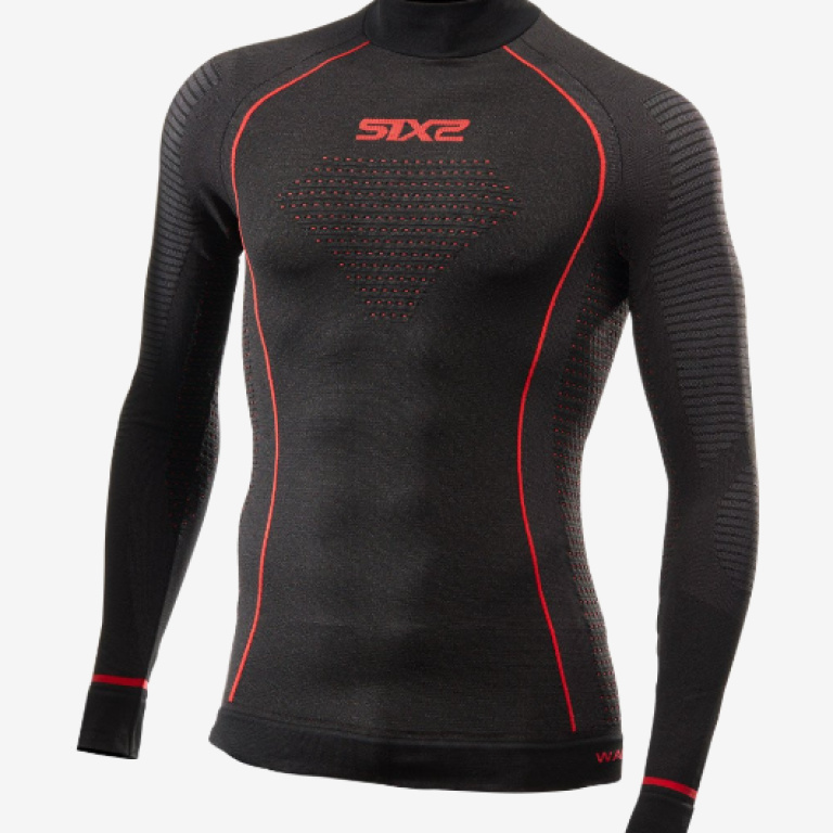 Maglia termica a maniche lunghe con lupetto nera/rossa SIX2