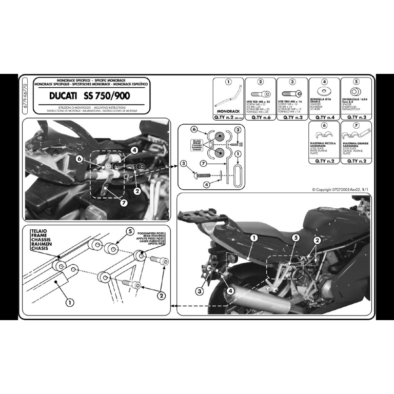 Attacco posteriore Givi 677F per Ducati 750SS 90-02, specifico per bauletto Monokey o Monolock, da abbinare a piastra Monokey M3 o Monolock MM