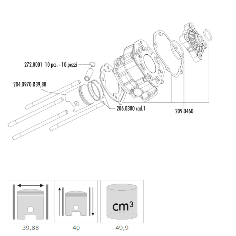 GRUPPO TERMICO POLINI 50cc IN GHISA per DERBI/VALENTI
