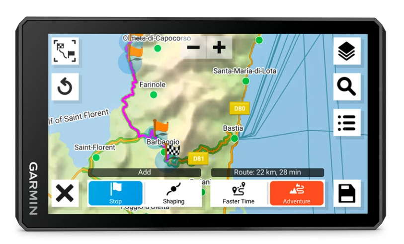 Pianifica un percorso personalizzato sul dispositivo, oppure utilizza l’ app con uno smartphone compatibile.
