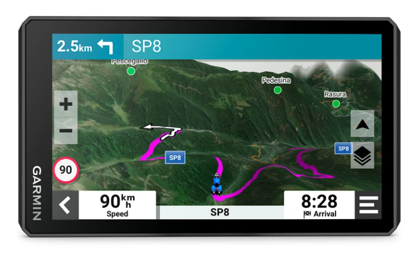 Trova le curve e i tornanti con l’impostazione Garmin Adventurous Routing™.