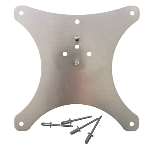 La piastra viene fornita con due dadi per il fissaggio al porta-targa e quattro rivetti per il fissaggio della targa.
