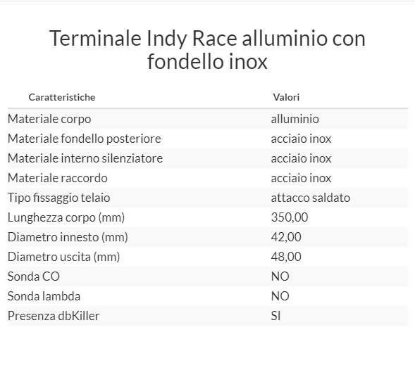 Terminale Indy Race alluminio con fondello inox