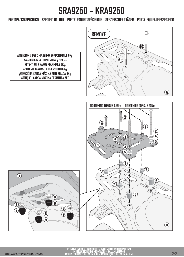 Attacco posteriore Givi SR2145 per Yamaha Tenere 700, specifico per bauletto Monokey o Monolock da abbinare alla piastra Monokey M5, M9A, M9B, M8A, M8B, o alla piastra Monolock M5M