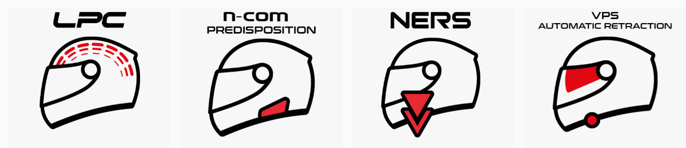 Il casco è predisposto ed omologato con il sistema di comunicazione N-Com e con l’innovativo ESS (Emergency Stop Signal).
