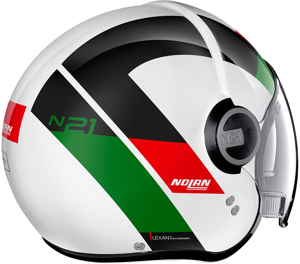 È uno dei mini jet di Nolan. Si caratterizza per il design moderno ed al tempo stesso d’ispirazione “vintage”, oltre che per la buona dotazione tecnica e l’ampia disponibilità di colori e grafiche. Volume contenuto (grazie alla disponibilità di due misure di calotta esterna), schermo parasole VPS, imbottitura interna di conforto estremamente avvolgente e Helmet Lock Ring fanno di N21 VISOR un prodotto interessante in ambito scooteristico come pure in ambito moto-turistico (grazie alla visiera ultrawide). Inoltre, la particolare attenzione prestata agli accostamenti di materiali, finiture e colori, nonchè l’ampiezza della gamma offerta rendono N21 VISOR un mini jet appetibile ad un vasto pubblico, di gusto classico o più sensibile ai “trend” del momento