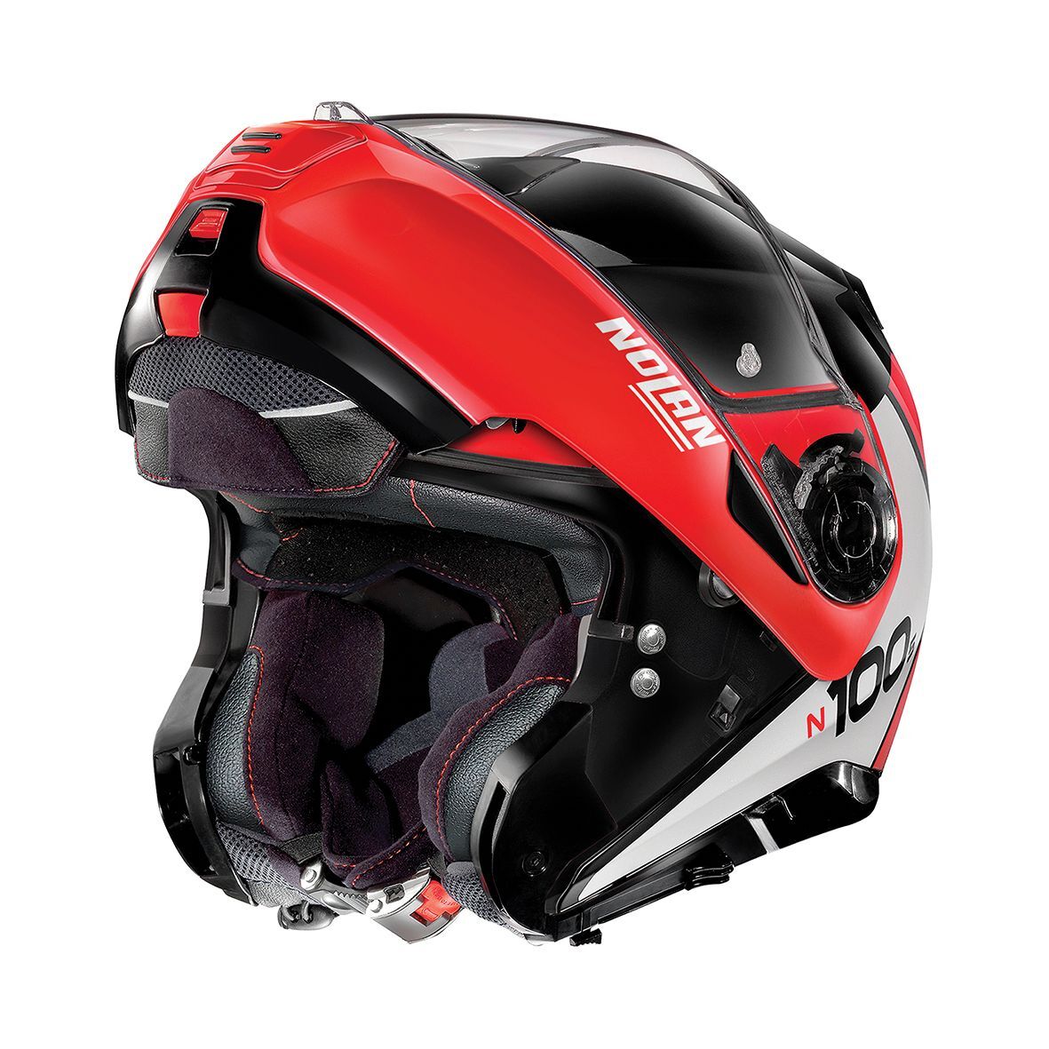 È la nuova e più esclusiva versione dell’apribile top di gamma di Nolan, ora arricchito dell’imbottitura interna di conforto Clima Comfort con innovativa costruzione a rete e del sistema di regolazione della posizione della cuffia (LPC Liner Positioning Control). I nuovi contenuti tecnici trovano riscontro in una vestizione grafica sportiva ed elegante e nella completa revisione stilistica dell’imbottitura interna di conforto. Sono poi confermate le consolidate caratteristiche tecniche che fanno di N100-5 un prodotto apprezzatissimo dai moto turisti più esigenti: volume contenuto (grazie alla disponibilità di due misure di calotta esterna), doppia omologazione P/J, visiera ultrawide, schermo parasole VPS (regolabile in svariate posizioni e dotato di sistema di richiamo automatico), sistema di ventilazione superiore AirBooster Technology, movimento di rotazione della mentoniera con traiettoria ellittica, esclusivo sistema di apertura della mentoniera con meccanismo a doppia azione, sistema di ritenzione con regolazione micrometrica a doppia leva Microlock2, imbottitura interna di conforto Clima Comfort (con tessuti micro forati e paranuca regolabile) e predisposizione per il sistema di comunicazione N-Com.