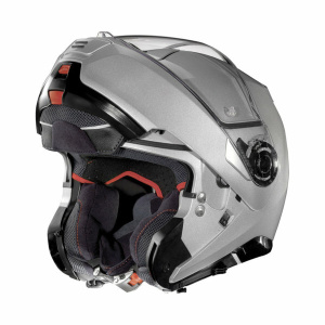 Nolan conquista il mondo dei modulari grazie all’esclusivo flip-back N120-1, un casco che rappresenta l’apice della tecnologia, dell’innovazione e del design, nato per rispondere alle esigenze di un mercato sempre più orientato alle moto crossover. Con questo modulare a doppia omologazione, integrale (P) e Jet (J) e mentoniera reversibile fino a 180°, Nolan rompe gli schemi con l’innovativo concetto di tecnologia flip-back. Il sistema di apertura della mentoniera, che prende il nome di Dual Action, ovvero doppia leva, rappresenta una delle peculiarità più importanti per questo modello, con un’apertura e una chiusura semplice e fluida. Una profonda esplorazione è stata fatta anche nella realizzazione di varianti grafiche e colori, con nuance uniche come ad esempio il sabbia, l’ocra, il rosso viscerale e accostamenti ricercati con blocchi colore o ancora, applicazioni d’avanguardia che miscelano colori e decalcomanie. L’equilibrio cromatico ed eleganza sono mantenuti in ogni configurazione d’utilizzo. N120-1 accoglie il sistema di comunicazione N-Com.