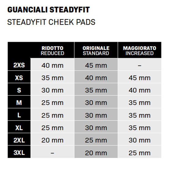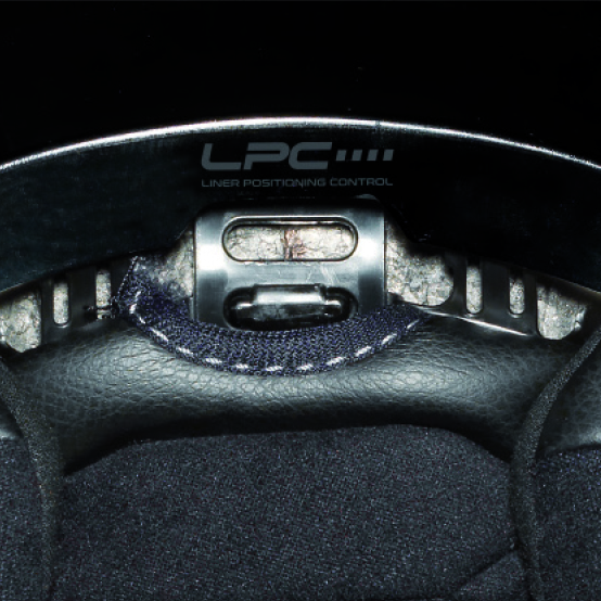 LPC – controllo posizionamento LINER (in attesa di brevetto): Questo sistema, brevettato, consente la regolazione della posizione del liner. Ciò consente il posizionamento del casco stesso – dimensione per essere regolato per teste diverse, di conseguenza adattandosi alle varie forme di requisiti e testa.