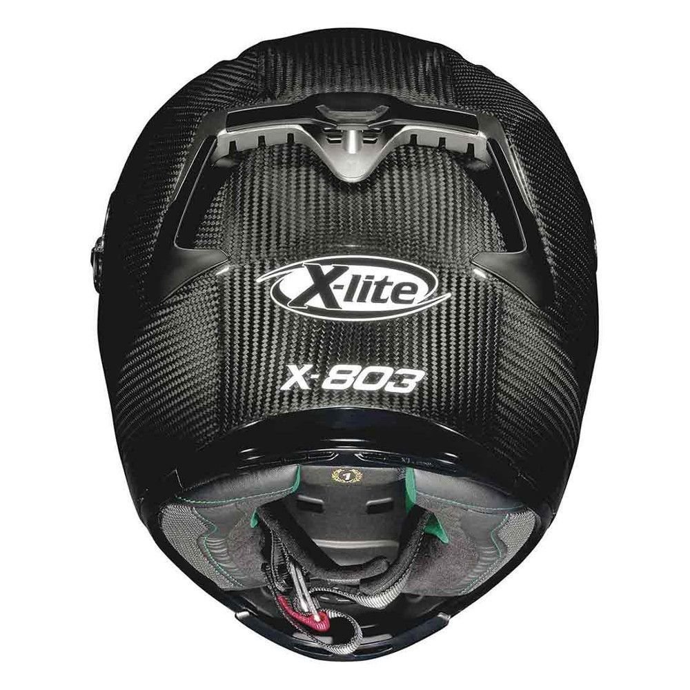 È l’esclusiva versione ad alto contenuto di carbonio del nuovo integrale racing di X-lite. Peso e volume estremamente contenuti (grazie alla costruzione ricca in carbonio ed alla disponibilità di tre misure di calotta esterna), sistema di rimozione dei cuscinetti dei guanciali in caso d’emergenza (NERS – Nolan Emergency Release System), affidabile meccanismo visiera con dispositivo Double Action, efcace sistema di ventilazione RAF (Racing Air Flow) ed imbottitura interna di conforto Carbon Fitting Racing Experience (con rinnovativa costruzione a rete) vogliono fare di X-803 ULTRA CARBON l’integrale racing più esclusivo per il motociclista più esigente.