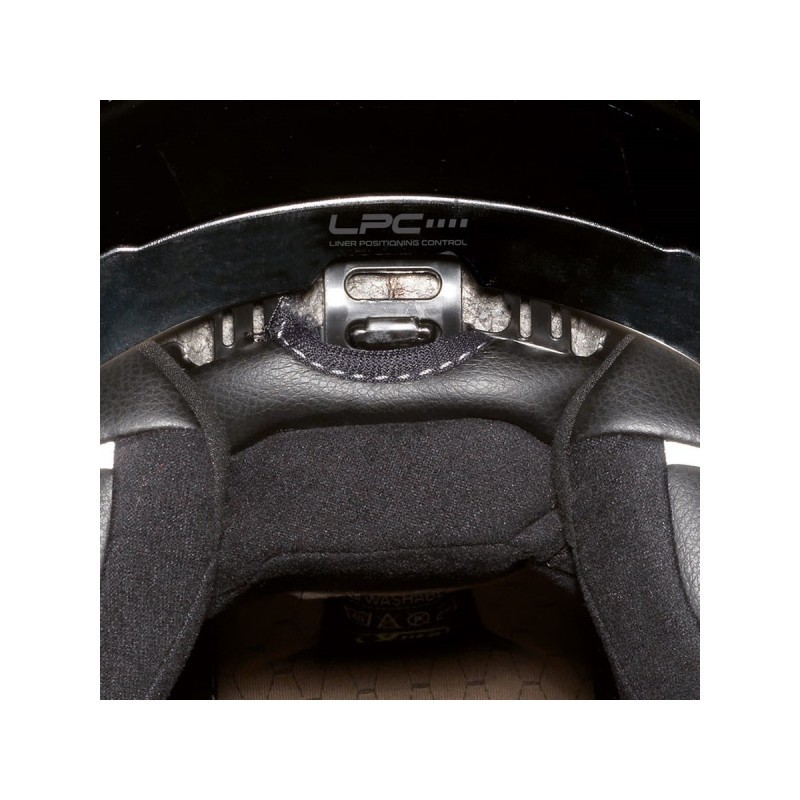 LPC – controllo posizionamento LINER (in attesa di brevetto): Questo sistema, brevettato, consente la regolazione della posizione del liner. Ciò consente il posizionamento del casco stesso – dimensione per essere regolato per teste diverse, di conseguenza adattandosi alle varie forme di requisiti e testa.