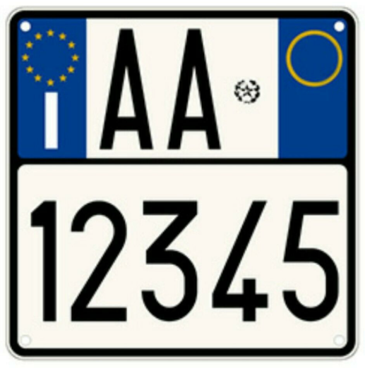 Compatibile con targhe con bande blu ai lati come da foto num.3 allegata (targa moto dopo anno 2000)