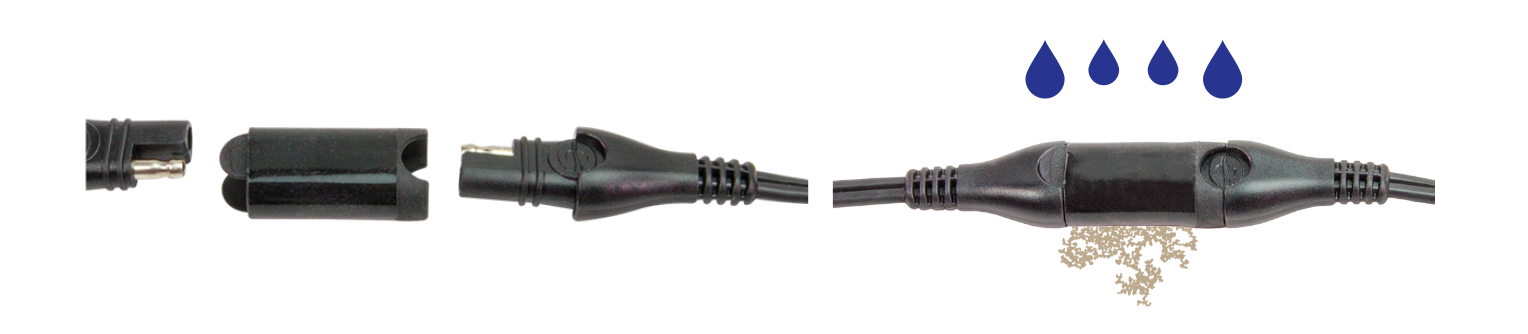Il connettore OptiMate SAE per impieghi gravosi – si abbina a tutti i connettori standard SAE a 2 pin.
