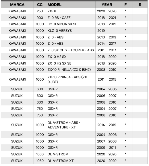 E’ la mescola scelta da chi predilige una frenata modulabile (più forza eserciti sulla leva più grip ottieni). - EX-C: utilizzo per solo pista garantiscono un grip più elevato nella prima parte della frenata (sono più pronte e più aggressive ma anche meno modulabili della versione EX), durata maggiore se utilizzate con dischi wave.
