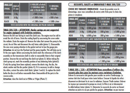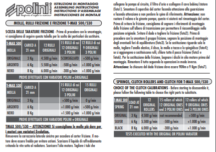 specifica per YAMAHA: T MAX 500 Carburatore (01/03) – T MAX 500 Iniezione (04/07) – T MAX 500 Iniezione (08/11)