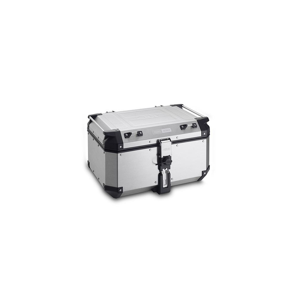 Top-case Trekker Outback con struttura in alluminio e bordi in alluminio profilato. Disponibile in due versioni: 42 lt e 58 lt.; che non necessitano di un attacco speciale, ma possono essere fissati su qualsiasi modello esistente di piastra MONOKEY®.