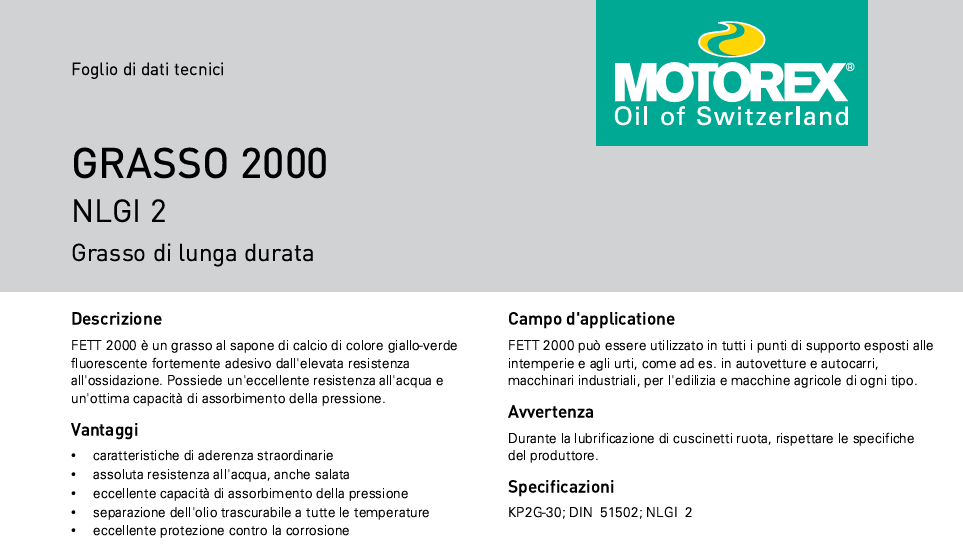 Grasso traslucido (FETT 2000) a lunga durata ad ALTE PRESTAZIONI per una lubrificazione ottimale.
