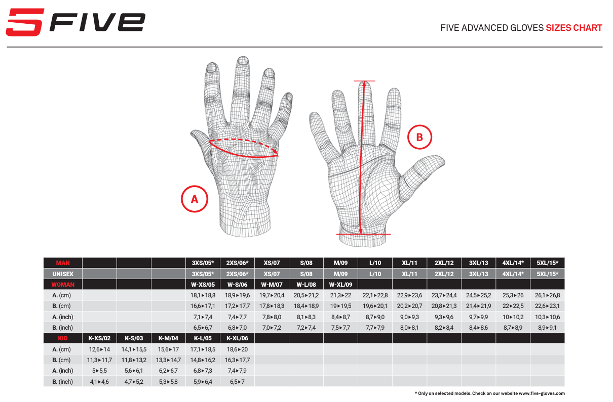 - Tessuto SpandexTM a 4 vie (parte superiore) per elasticità / pelle sintetica (palmo) per resistenza.