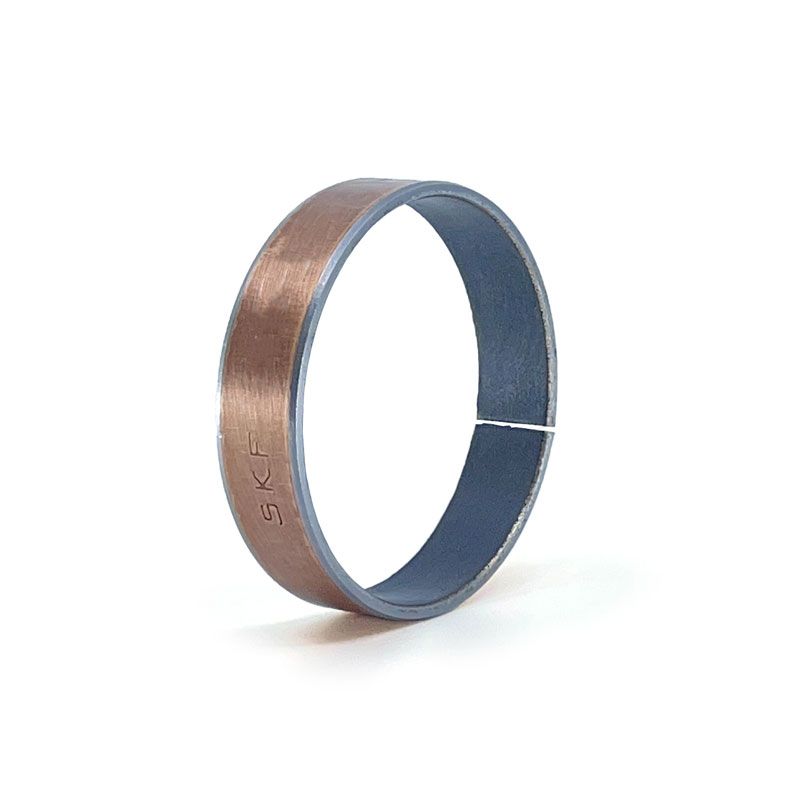 Le boccole forcella SKF combinano la resistenza meccanica dell’acciaio con il basso attrito di uno strato di strisciamento autolubrificante a base di PTFE. Il sottile strato intermedio in bronzo crea un forte legame tra il supporto e le superfici di scorrimento e migliora la dissipazione del calore generato durante il funzionamento. Per proteggere le boccole dalla corrosione, il supporto in acciaio è ramato.