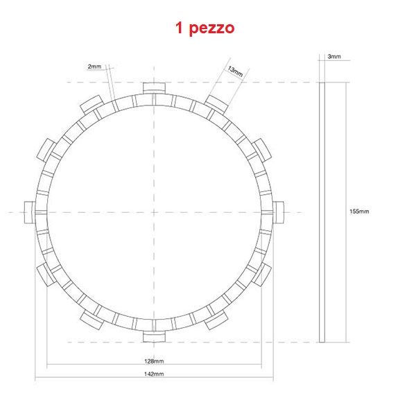 num. 1 pezzo: 12 Denti – Diametro Esterno Ø 155mm – Diametro Interno Ø 128mm – Spessore 3 mm