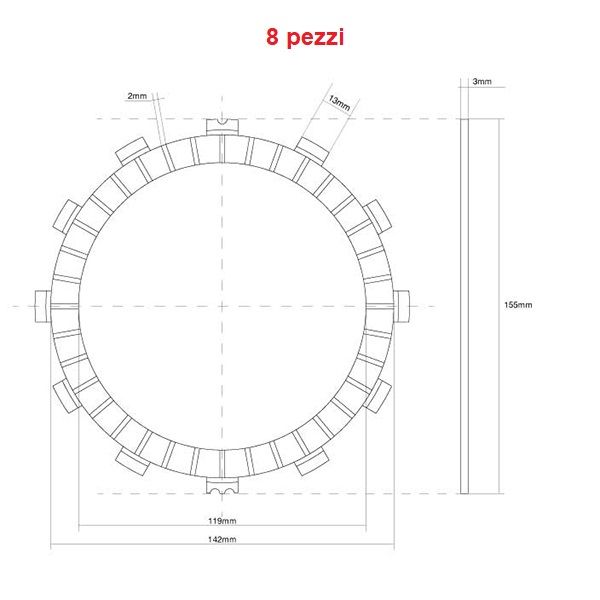 num. 8 pezzi: 12 Denti – Diametro Esterno Ø 155mm – Diametro Interno Ø 119mm – Spessore 3 mm