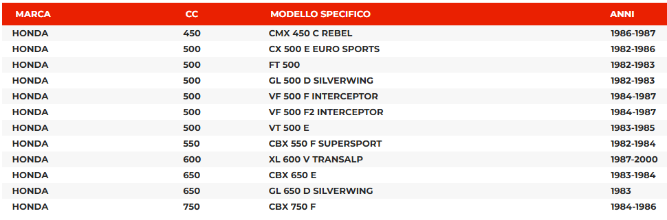 Il kit è compatibile con le seguenti moto: