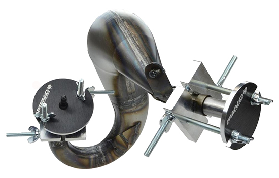 Il kit di riparazione marmitte permette di sigillare lo scarico da entrambi i lati e tramite un ugello posto in uno dei 2 tappi di introdurre aria a pressione permettendo di “rigonfiare” le ammaccature.