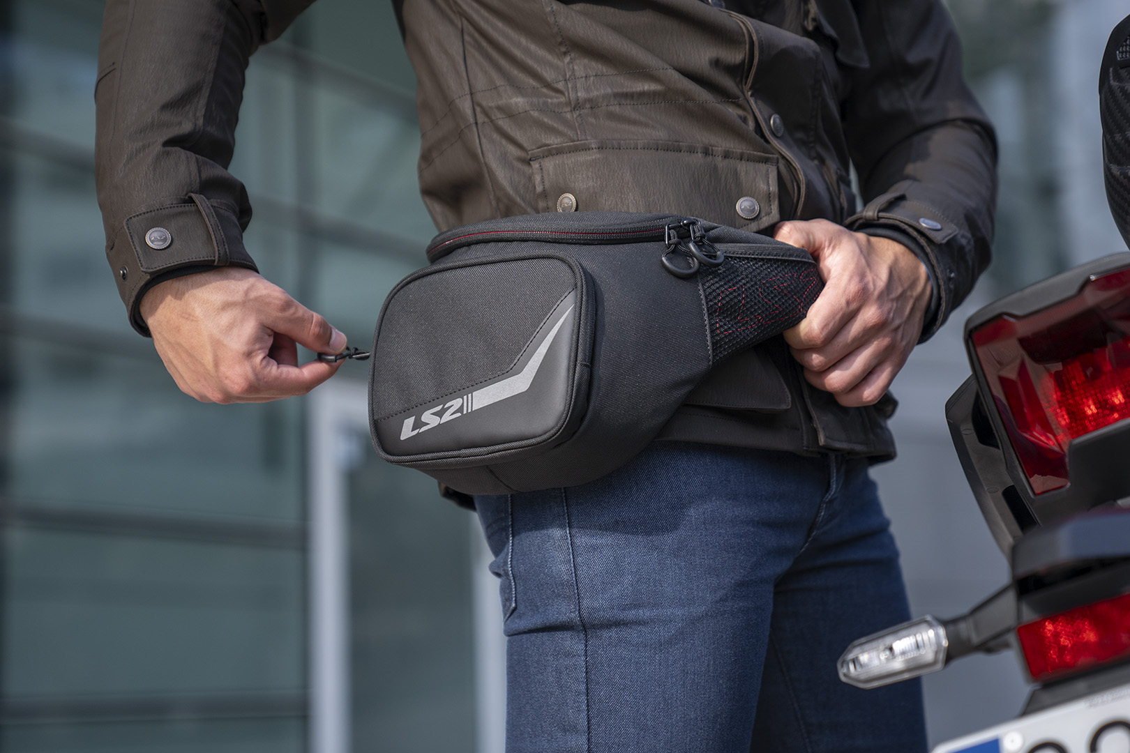 • Tasca laterale destra con zip sulla cintura per deposito sicuro del contenuto