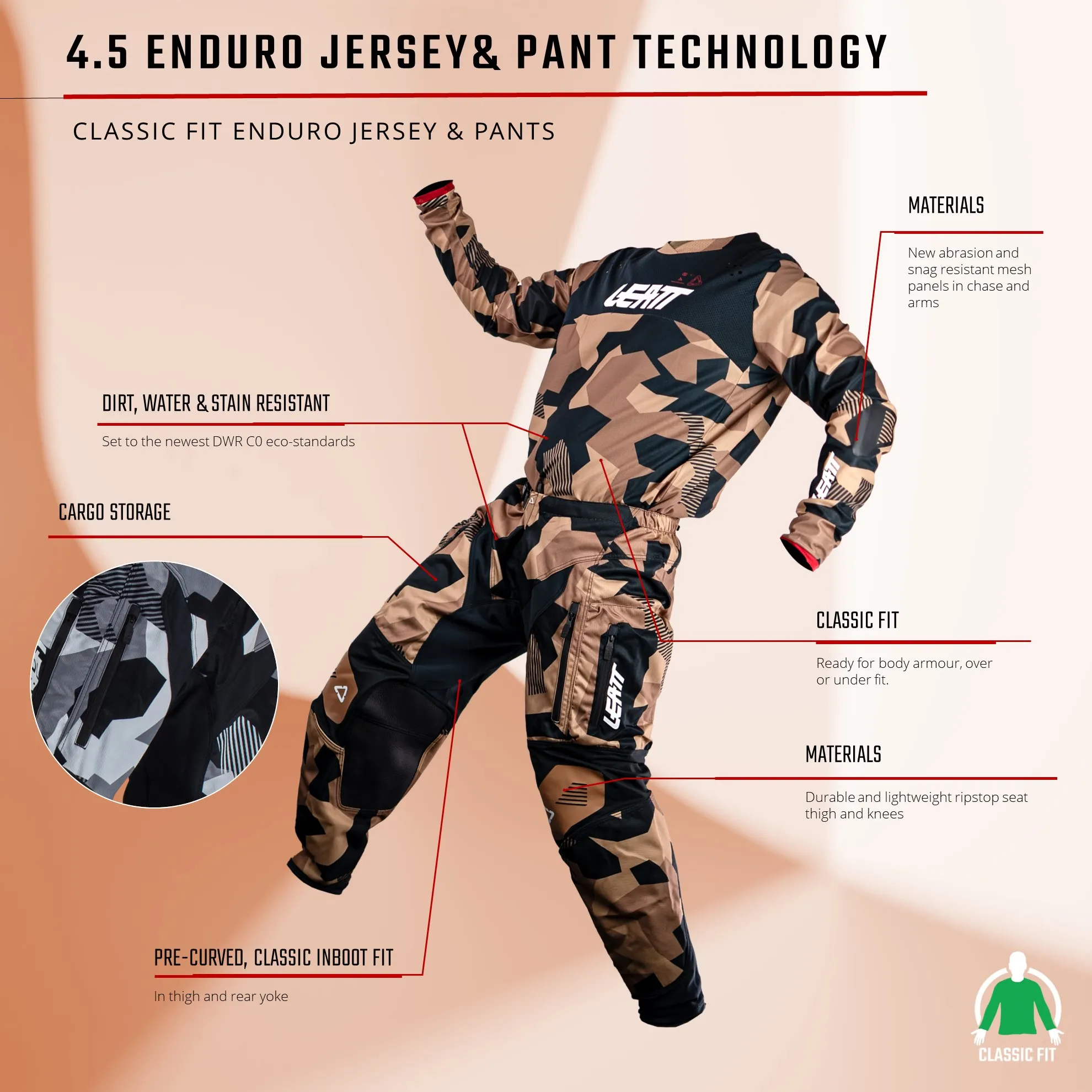 La maglia Enduro 4.5 è progettata per resistere alla guida fuoristrada intensa. La maglia è dotata di pannelli in rete resistenti agli strappi. Un taglio su misura garantisce una perfetta vestibilità durante la guida con o senza pettorina, mentre l’impugnatura in silicone sui pantaloni mantiene la maglia in posizione. Il tessuto sia della maglia che dei pantaloni è resistente allo sporco, all’acqua e alle macchie, mantenendone lo stile e la funzionalità in tutte le condizioni di guida.