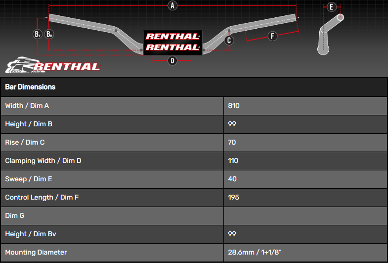 Il manubrio Renthal Twinwall è coperto da brevetto: US Patent No. 6182528 e 5832785, GB Patent No. 2321225, US design No. 431803