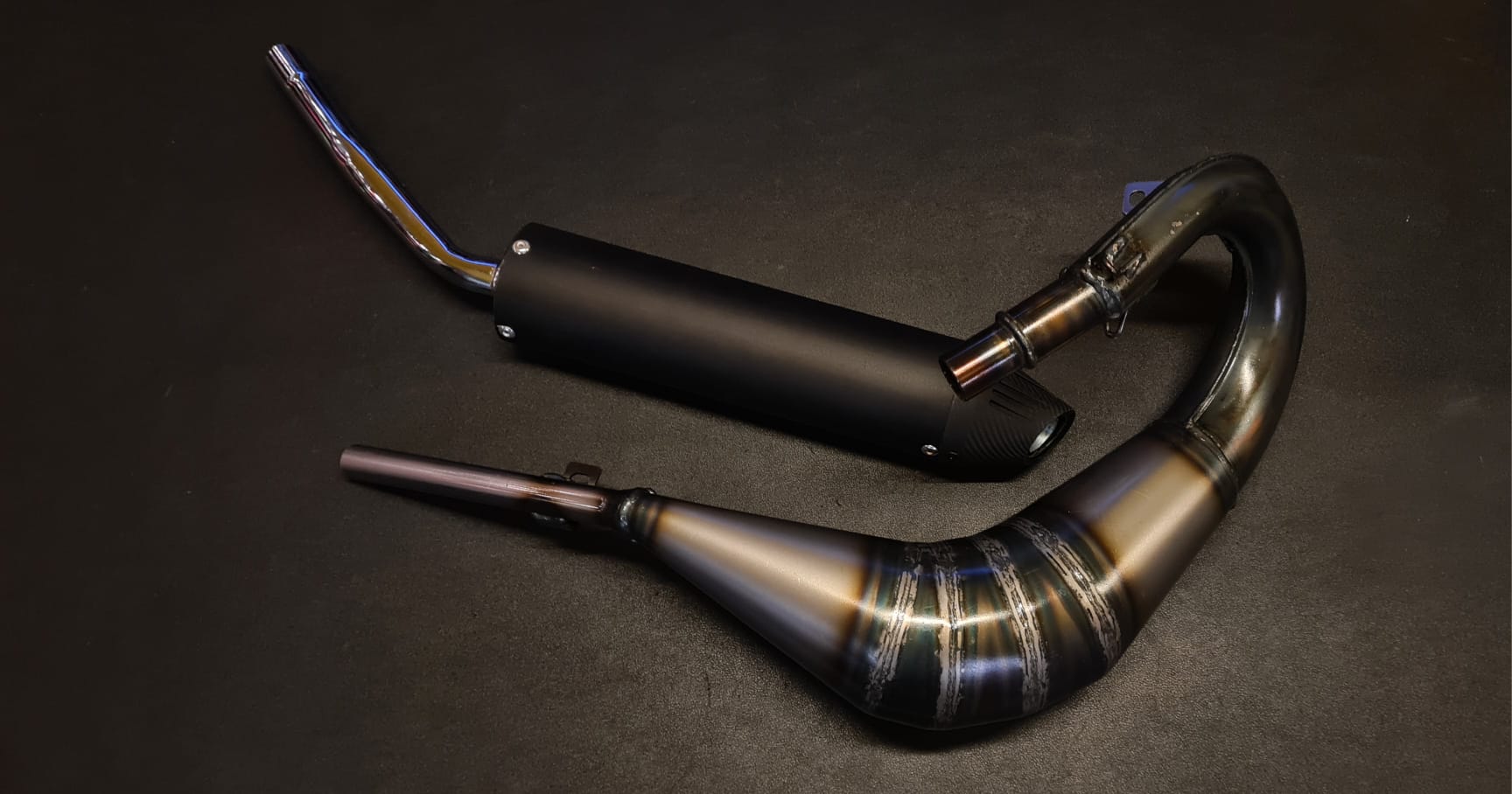 La linea dedicate ai 50 cc è caratterizzata da una marmitta realizzata in lamiera d’acciaio.