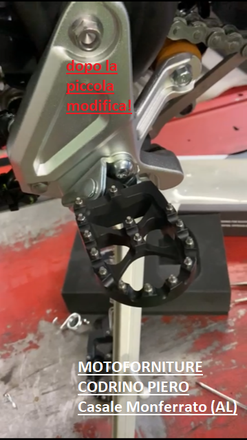 NOTA BENE: per un corretto montaggio le pedane vanno leggermente rifilate nella punta in quanto su alcune versione di Tenere’ potrebbero toccare contro la vite di fissaggio del supporto pedana.