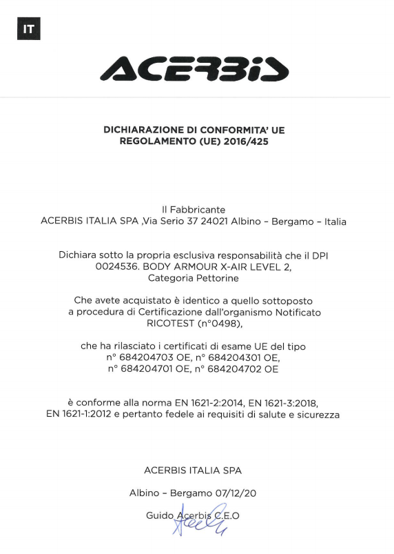 Pettorina ACERBIS mod. X-AIR livello 2