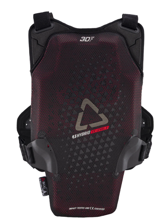 La nuova gamma Hybrid, progettata specificamente per il motociclismo, è dotata di una protezione toracica rigida per resistere agli urti e di una protezione dorsale morbida per un comfort extra. La protezione toracica 4.5 Hybrid è dotata di una protezione toracica rigida con protezione dagli impatti FlexMesh Pro, molto leggera e ventilata, mentre la parte posteriore è dotata di morbida schiuma antiurto 3DF che si adatta alla forma del corpo rendendola molto comoda e ventilata. Il design FlexMesh Pro e 3DF sfrutta al meglio i giunti flessibili e le morbide schiume antiurto, consentendo una flessibilità 3D e una vestibilità eccezionale. Il protettore toracico è dotato di una cinghia elastica che ne garantisce il posizionamento sicuro. Il sistema BraceOn consente una perfetta vestibilità del collare cervicale.