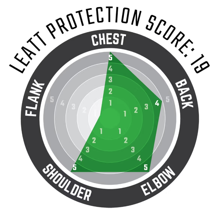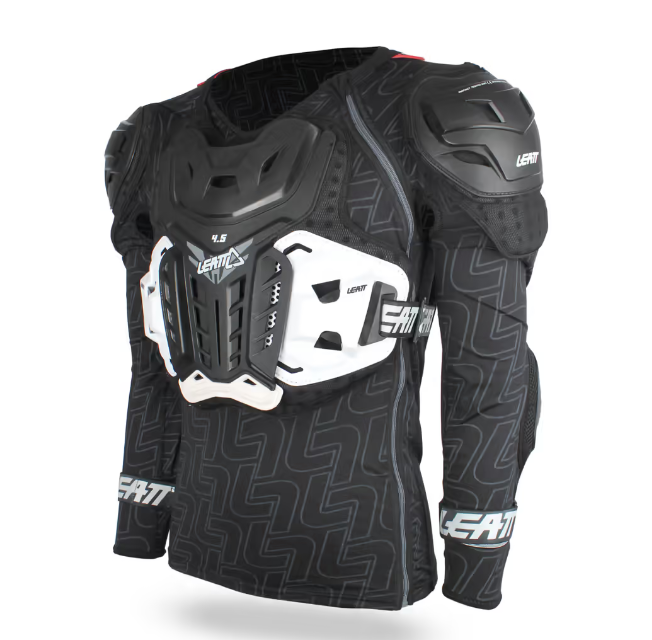 Il corpetto Leatt Body Protector 4.5 a rivestimento rigido offre la massima protezione per petto, schiena, gomiti e spalle. Testato e con certificazione CE, ha ottenuto un totale di 19 punti sul sistema di classificazione della protezione Leatt.