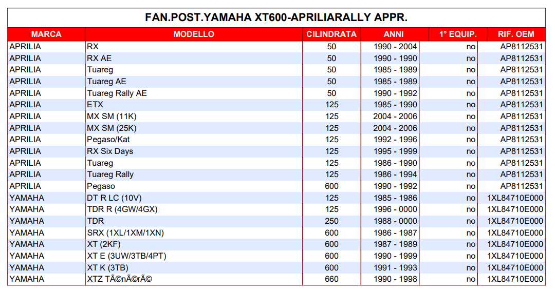 | YAMAHA | TENERE | 700 | 2019 | 2025 |