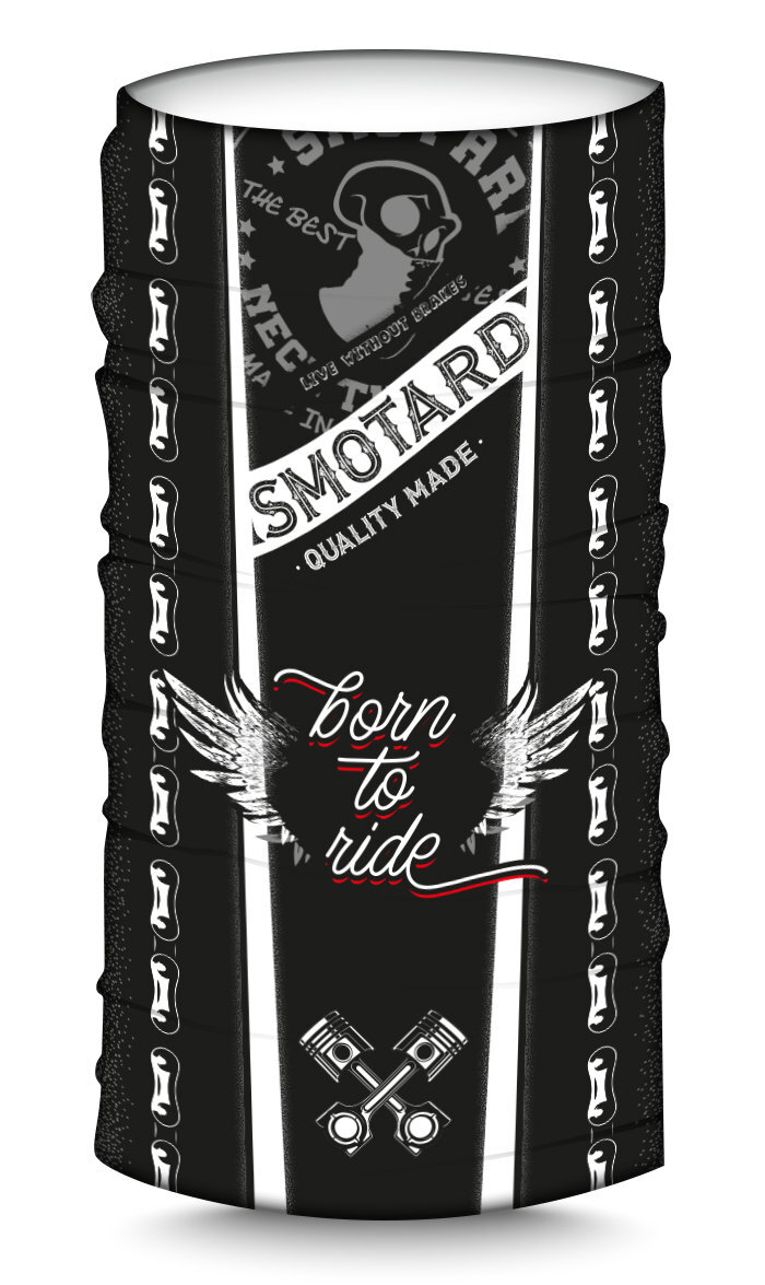 Colore nero Per lo scaldacollo #BorntoRide firmato Smotard. Studiato per chi ama le forcelle lunghe.