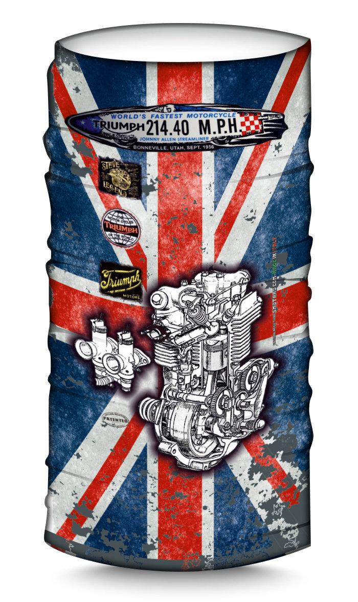 Scaldacollo customizzato in memoria delle grandi vittorie Triumph. Protezione dal caldo e dal freddo in un solo prodotto di alta qualita, realizzato in microfibra bielastica, resiste al tempo e all’usura senza stress.