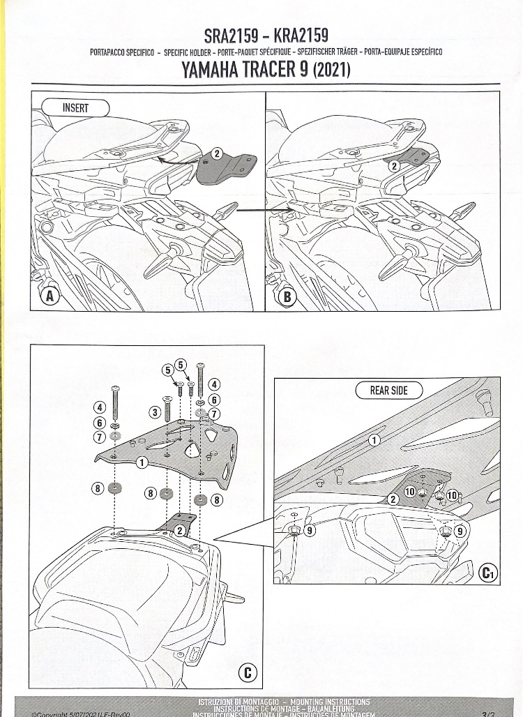 SRA2159 – Supporto bauletto GIVI Monokey per Yamaha Tracer 9 2021 – Tracer 900 2021