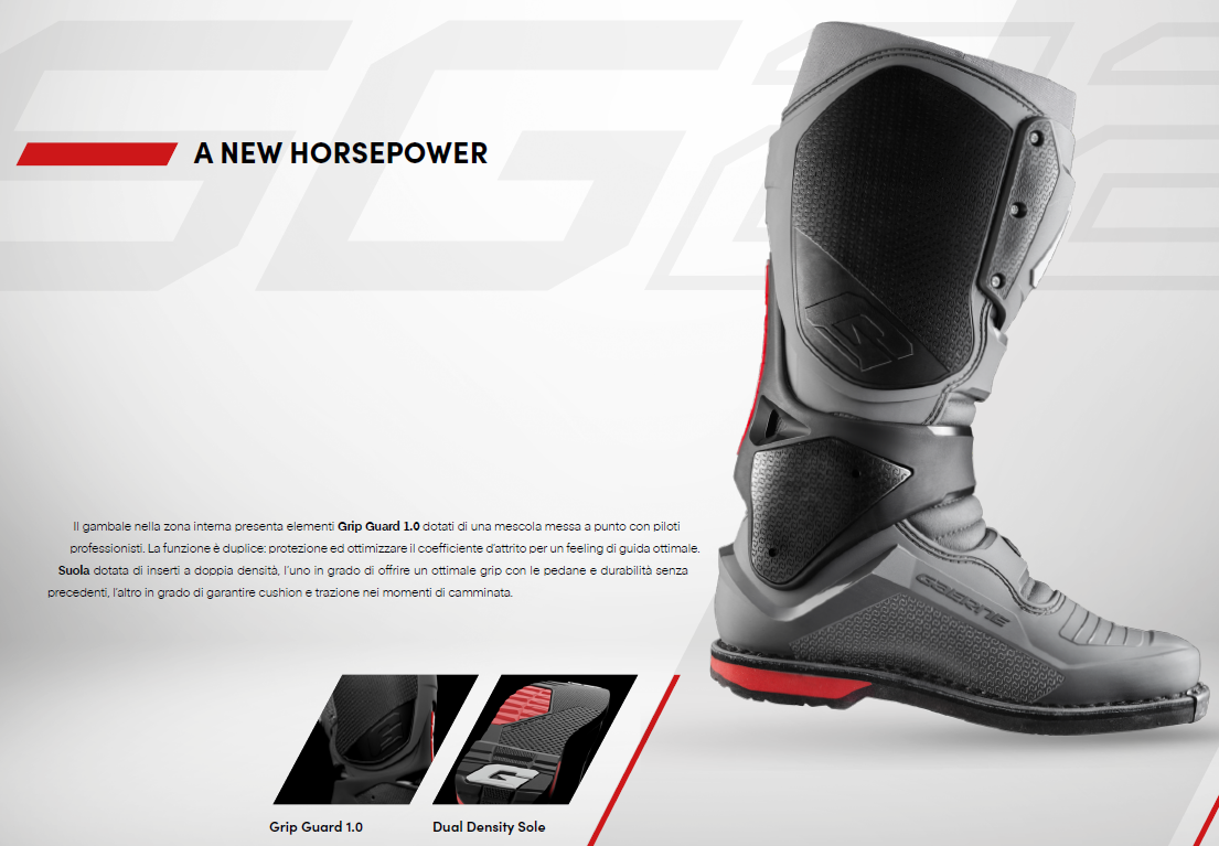 Il gambale nella zona interna presenta elementi Grip Guard 1.0 dotati di una mescola messa a punto con piloti professionisti.