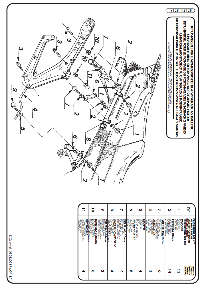 Y128 – KIT UNIVERSALE PER IL MONTAGGIO DEL WINGRACK A 2 BAULETTI